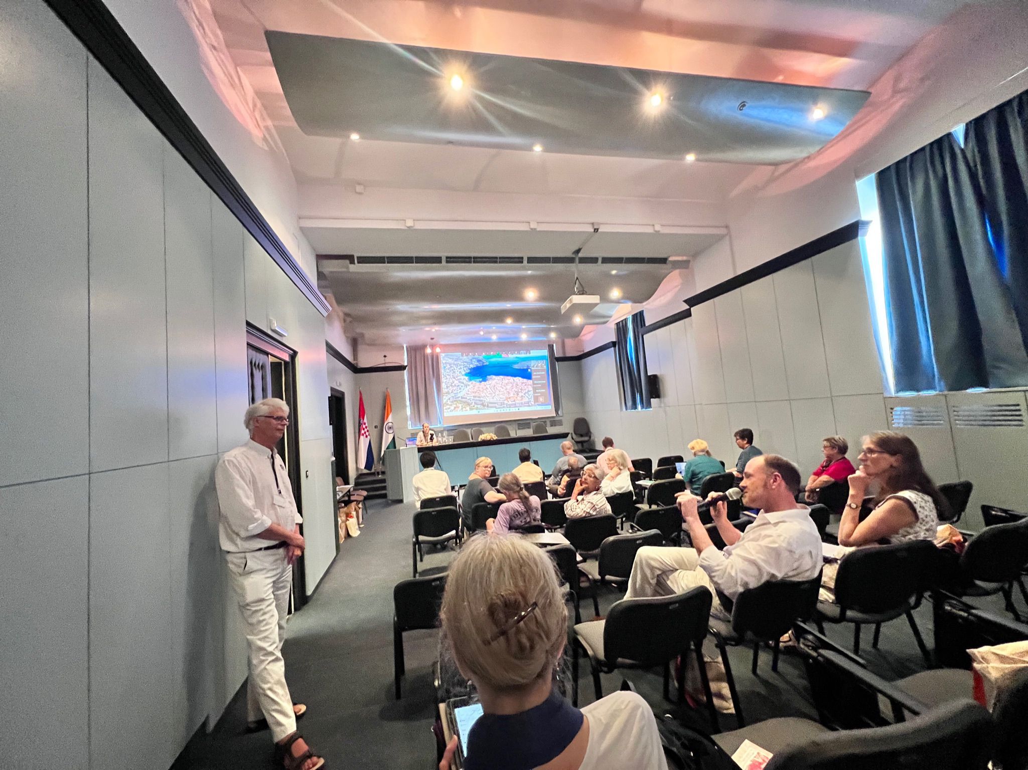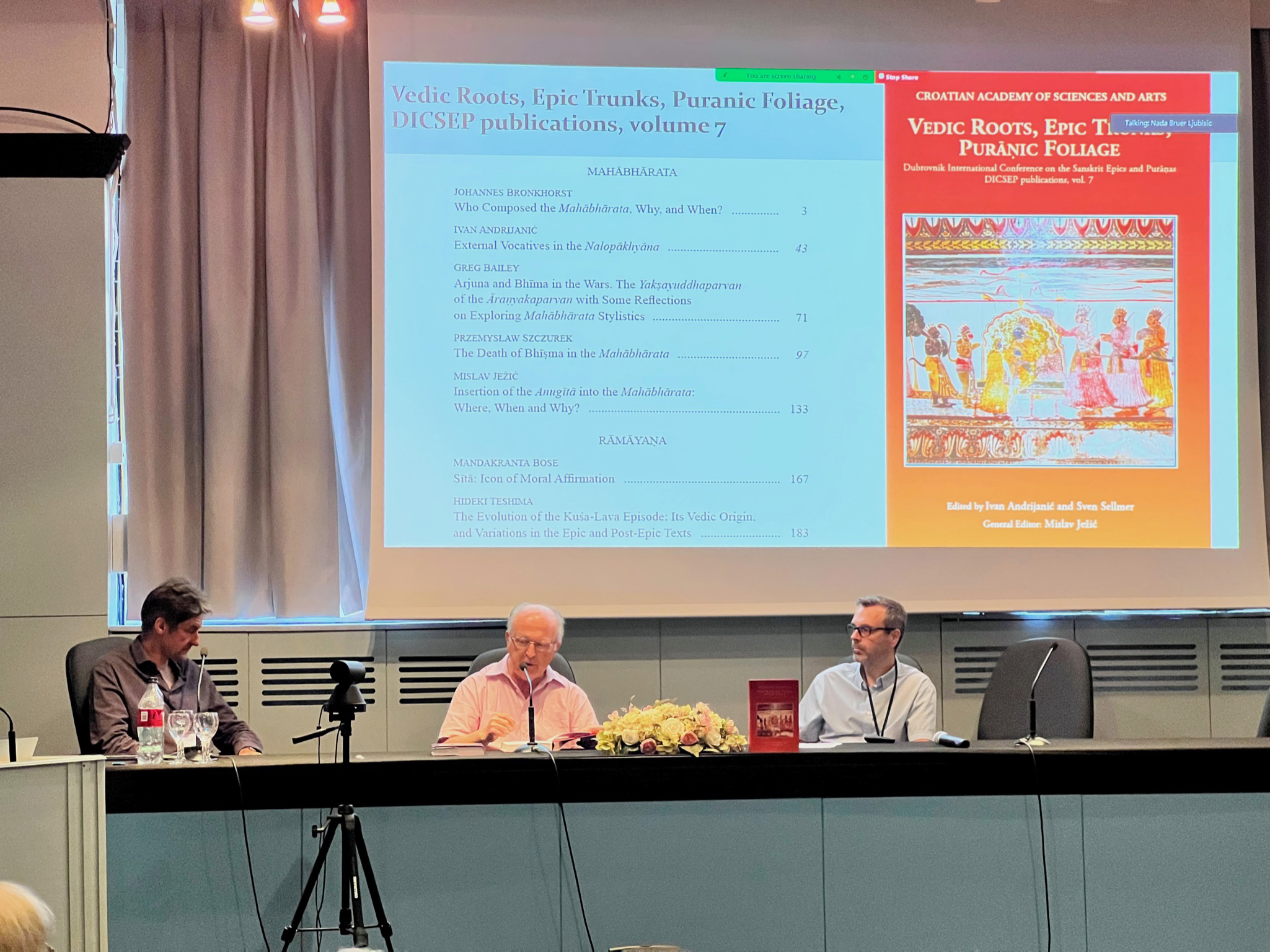 In the aftermath of the Croatian Homeland War, from December 24 to 28, 1994, a preliminary meeting was held at the Excelsior Hotel in Dubrovnik, where it was agreed that the first Dubrovnik International Conference on Sanskrit Epics and Purāṇas would be held in the summer of 1995. The preliminary meeting was attended by Greg Bailey (Australia), Hans Bakker (Netherlands), John and Mary Brockington (UK), Horst Brinkhaus (Germany), Klara Gönc Moačanin (Croatia), Milka Jauk-Pinhak (Croatia), Mislav Ježić (Croatia), Krešimir Krnic (Croatia), Peter Schreiner (Switzerland) and Georg von Simson (Norway).